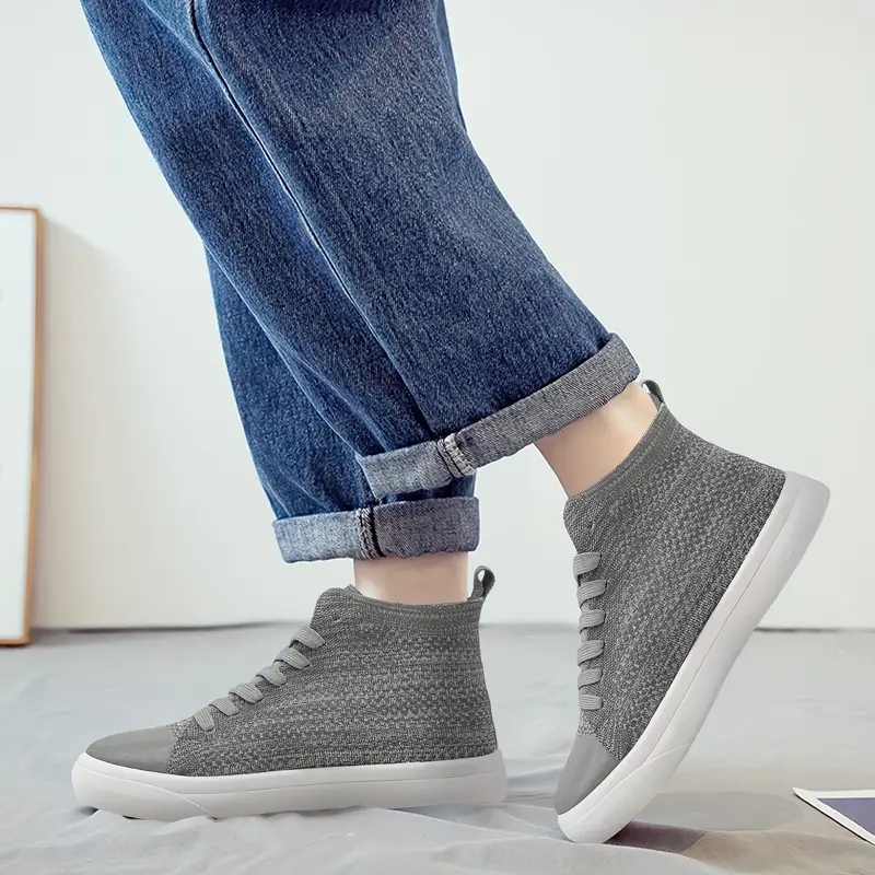 Men’s Spring/Summer Casual High-Top Sneakers – Versatile Lace-Up Shoes with Synthetic Upper