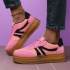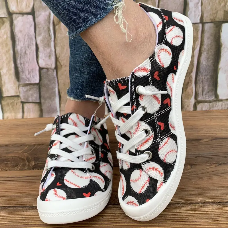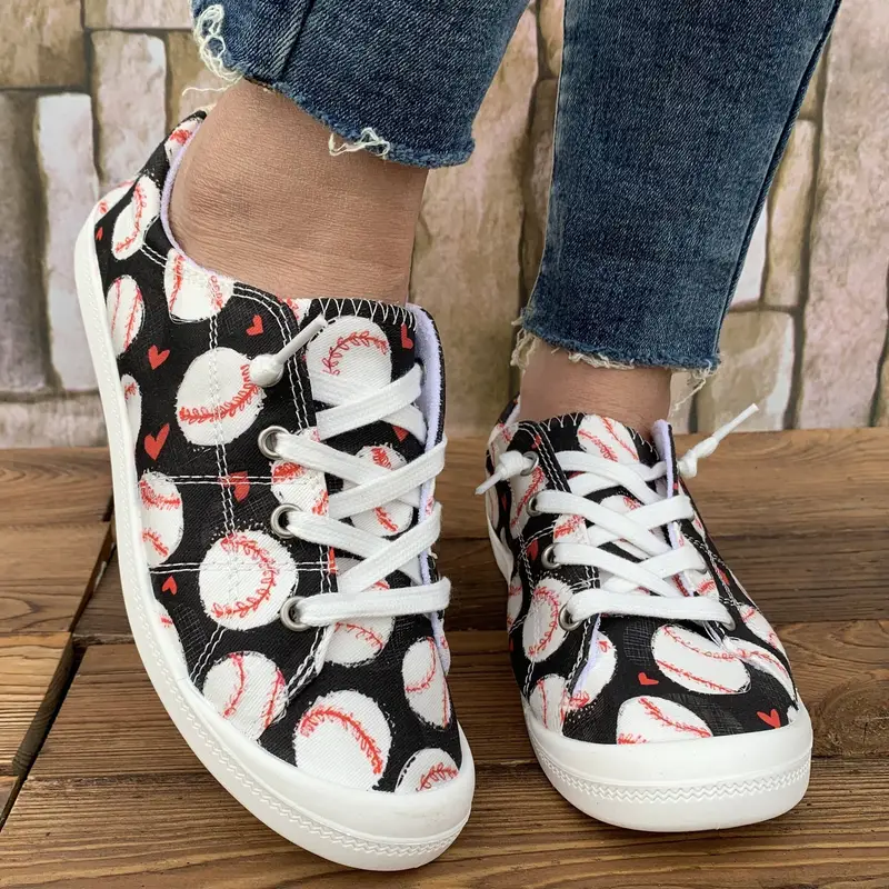 Women’S Floral Flat Shoes, Round Toe Lace-up Breathable Non-slip Sneakers